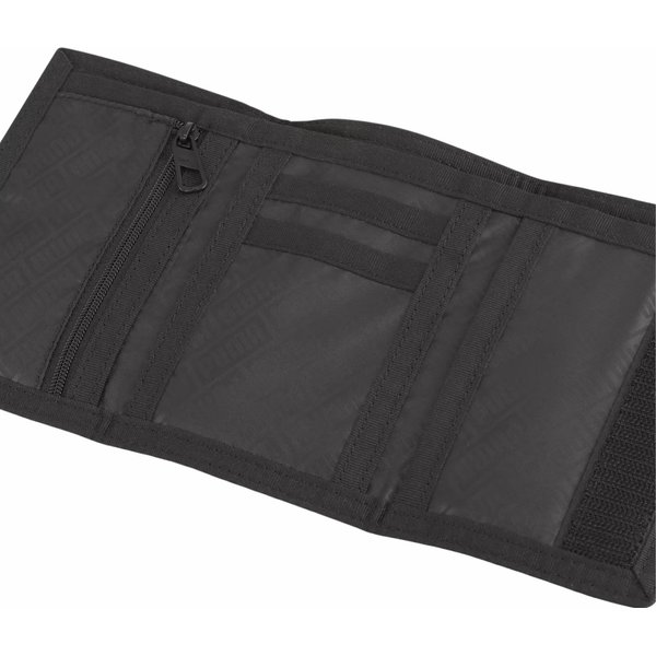 Jeśli zależy Ci na wytrzymałym, a jednocześnie kompaktowym portfelu - postaw na model Plus od marki Puma. Produkt ten jest niewielkich rozmiarów konstrukcje, jednak znajdzie się tam miejsce na wszystkie najważniejsze elementy. Posiada on także kieszonkę z siatki, zapinaną na zamek, dlatego będzie idealnym miejscem np. monety. Model ten został wykonany z materiału, który jest odpowiedzialny za jego trwałość. Portfel jest zapinany na zamek błyskawiczny, posiada 3 przegrody na karty, a od zewnętrznej strony widnieje logo marki Puma.