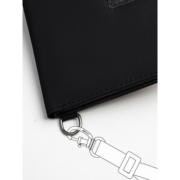 Ochrona kart kredytowych. Specjalne kieszenie chronią karty oraz dokumenty wykorzystujące technologię RFID przed zeskanowaniem i kradzieżą tożsamości. Blokują częstotliwości od 10MHz do 3GHz używane w większości elektronicznych dokumentów i kartach płatniczych.
