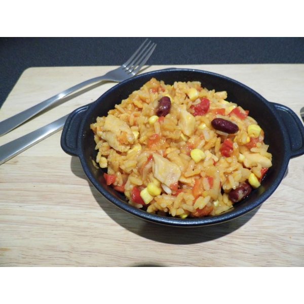 Skład: ryż długoziarnisty (26%), gotowany kurczak (11%), krojone pomidory, cebula, czerwona papryka, kukurydza, olej rzepakowy, sos Fajita (3%) (cebula w proszku, olej słonecznikowy, sok cytrynowy, cukier, czosnek, papryka, sól, kminek, chilli w proszku), czerwona fasola, mąka kukurydziana, sól.