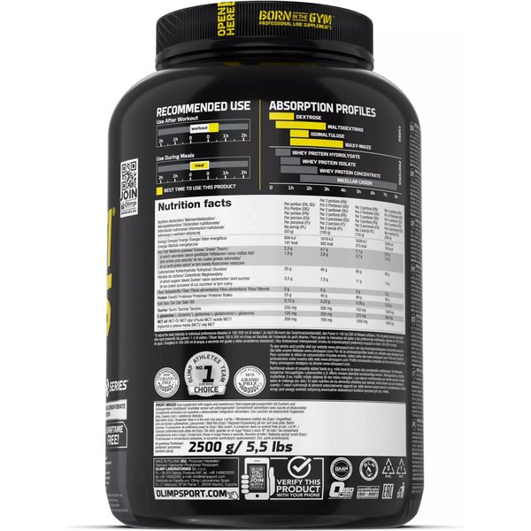 Profi Mass marki Olimp to doskonała odżywka na przyrost beztłuszczowej masy mięśniowej. W składzie znajdziesz zbiór najbardziej zaawansowanych, złożonych węglowodanów, długołańcuchowe maltodekstryny i specjalną wielkocząsteczkową woskową skrobię kukurydzianą - Waxy Maize. Mają one niski indeks glikemiczny, więc nie ma szans na wzbogacenie się o tłuszcz, jedynie w mięśnie. Do tego bazę węglowodanową uzupełniono o nowoczesną białkową formułę, która zawiera zestaw świetnie przyswajalnego koncentratu, izolatu i hydrolizatu białekserwatki połączonego z wolno wchłanianą kazeiną micelarną.