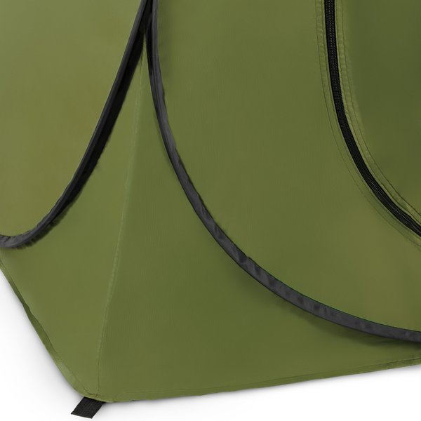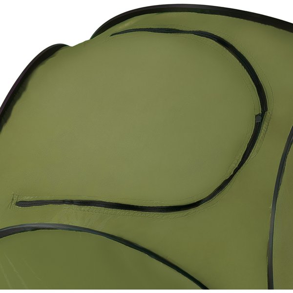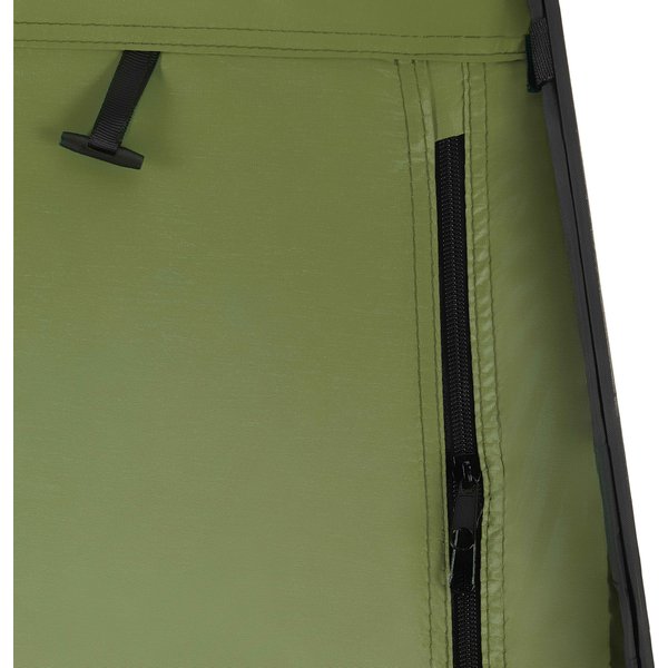 - Zamykane drzwi z opcją podwinięcia: Zamek błyskawiczny pozwala całkowicie zamknąć namiot dla zapewnienia prywatności. Możliwość podwinięcia drzwi i ich przypięcia sprawdza się w cieplejsze dni lub podczas intensywnego użytkowania, np. pod prysznicem.