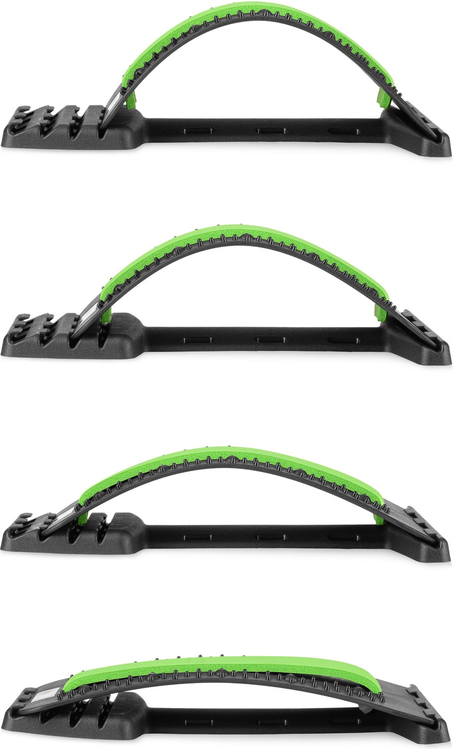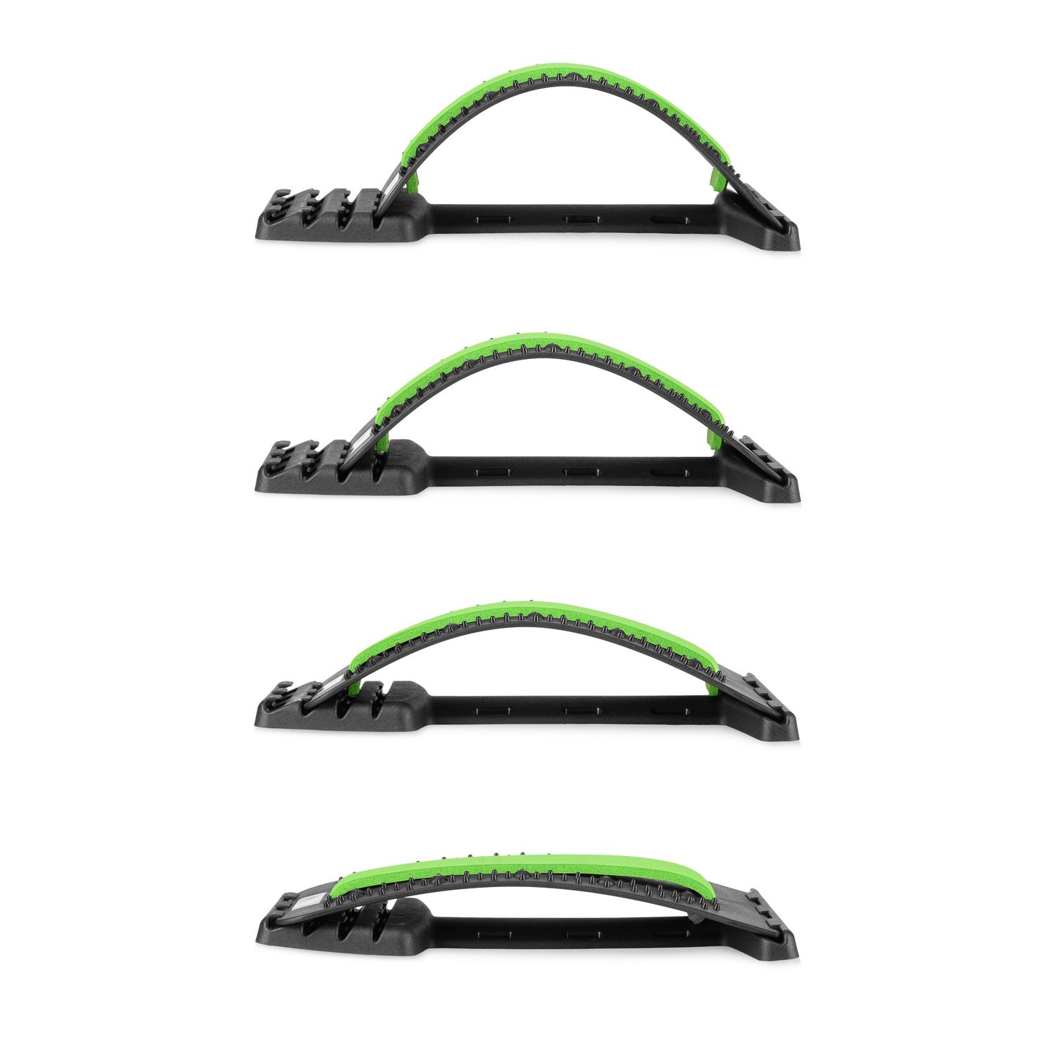 - Stopniowa, intuicyjna regulacja: Cztery poziomy wygięcia pozwalają dobrać intensywność rozciągania – od delikatnego odprężenia po głębszą pracę nad mobilnością pleców.