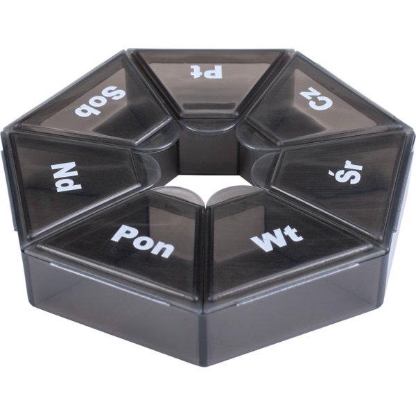Jeśli często podróżujesz, jesteś zabiegany lub zdarza Ci się zapominać o systematycznym zażywaniu leków - postaw na pudełko Heptagon od marki Rea Tape. Model ten sprawi, że już zawsze będziesz pamiętał o swoich lekach i będziesz mógł mieć je zawsze przy sobie. To również doskonałe rozwiązanie dla osób, które podróżują i nie chcą obciążać sobie bagażu zbędnymi opakowaniami leków. Pudełko jest niezwykle lekkie i doskonale chroni zawartość przed wilgocią. Zawiera ono 7 przegródek na każdy dzień tygodnia.