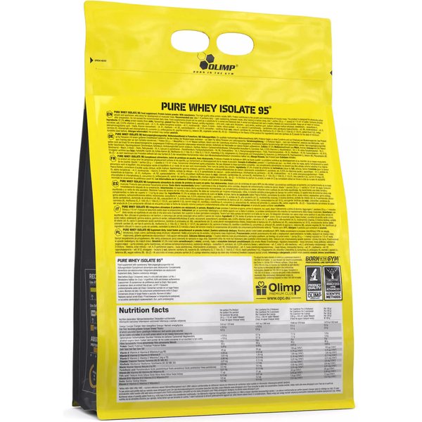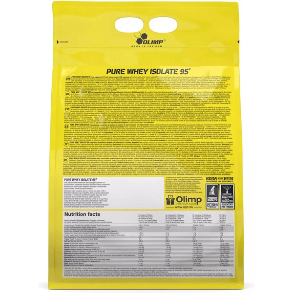 OLIMP Pure Whey Isolate 95® jest najwyższej jakości, czystym izolatem białek serwatkowych (WPI), wzbogaconym kompleksem witamin i składników mineralnych, zapewniających prawidłowy przebieg procesów metabolicznych przy zwiększonym wysiłku fizycznym i zwiększonym spożyciu białek. Izolaty białek serwatkowych charakteryzują się najwyższą wartością odżywczą spośród wszystkich białek pokarmowych. Pozyskiwane białka w procesie mikrofiltracji CFM , nie denaturowane, zachowują pełną strukturę i aktywność funkcjonalnych białek serwatkowych - beta laktoglobuliny, alfa laktoalbuminy, immunoglobuliny, albuminy osocza, laktoferyny, laktotransferyny, ceruloplazminy, fosfoglikoproteiny, proteazy i peptonów. Wysoka wartość odżywcza sprawia, że izolowane białka serwatkowe uznano za najwartościowsze źródło białka pokarmowego dla sportowców wyczynowych i osób aktywnych ruchowo. Wysoką wartość odżywczą zawdzięczają najwyższej, możliwej przyswajalności, warunkowanej idealną rozpuszczalnością i korzystnym ciśnieniem osmotycznym nie denaturowanych białek oraz optymalnym proporcjom aminokwasów egzo- i endogennych z wyjątkowo wysokim udziałem aminokwasów rozgałęzionych (BCAA) i glutaminy.