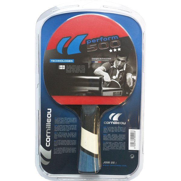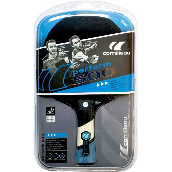 Rakietka do tenisa stołowego Perform 500 renomowanej francuskiej marki Cornilleau, jest produktem dla graczy ofensywnych i wymagających wysokiej jakości.