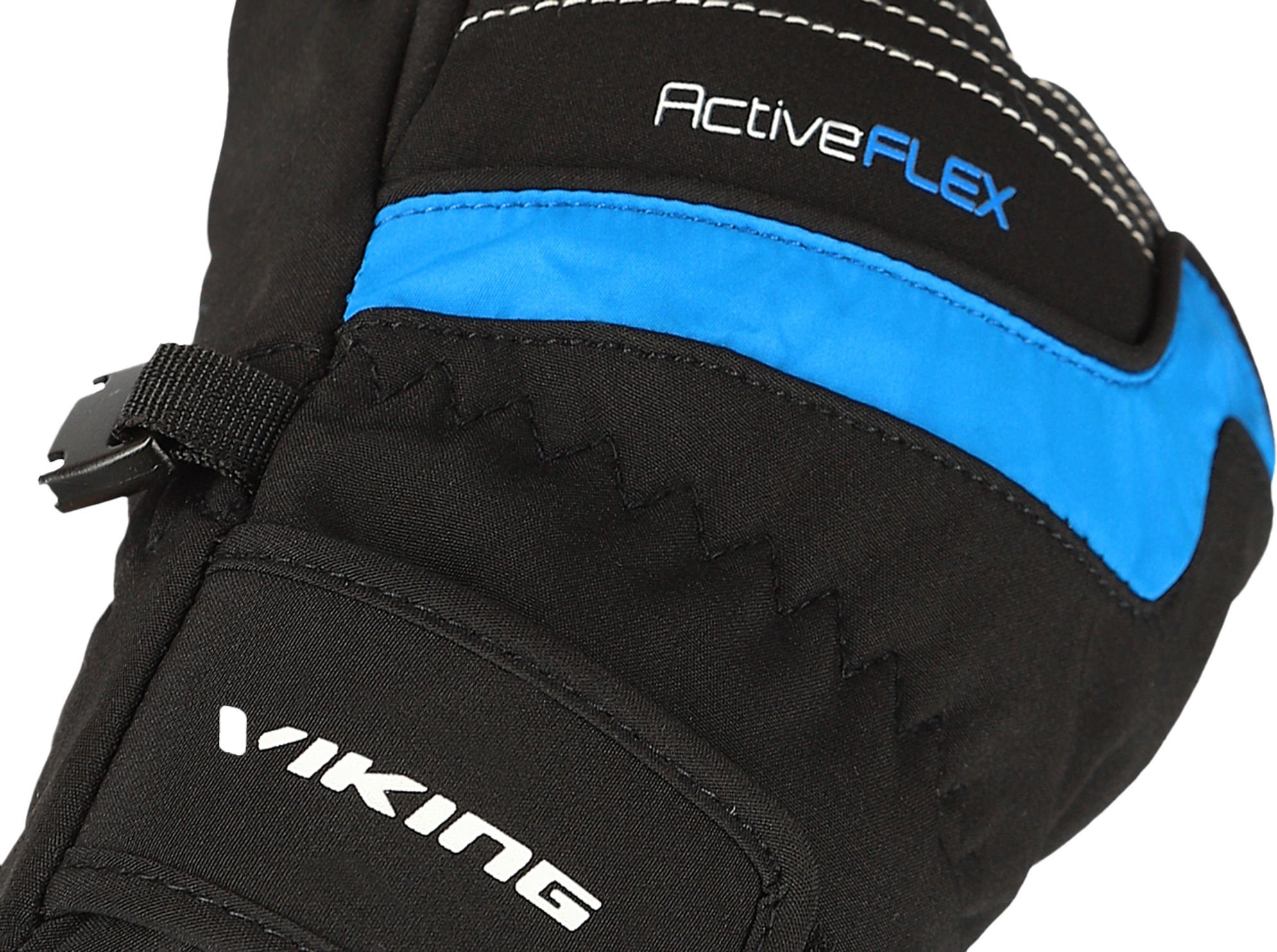 Rękawice Viking wyróżniają się również nowoczesnym designem. Szwy dekoracyjne i wstawki materiałowe na wierzchu dłoni nadają im stylowy wygląd, a napis "Active Flex" dodatkowo podkreśla ich funkcjonalność. Rękawice posiadają także wzmocnienia na dłoni, co zwiększa ich trwałość i odporność na uszkodzenia, nawet przy intensywnym użytkowaniu. Zapięcie na rzep z napisem oraz pętelka do zaczepienia to praktyczne dodatki, które ułatwiają codzienne korzystanie z rękawic.