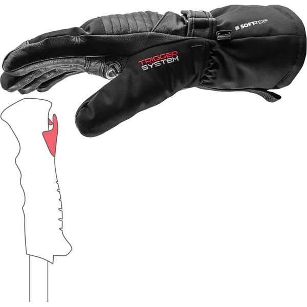 Dzięki wodoodpornej i wiatroszczelnej membranie SOFT-TEX® oraz grubej podszewce Primaloft® Gold, Twoje ręce są w pełni chronione i doskonale izolowane. Konstrukcja jest wodoodporna i wiatroodporna. Specjalna kieszonka pozwala na umieszczenie dodatkowego podgrzewacza. Takie rozwiązanie świetnie sprawdzi się podczas ekstremalnie niskich temperatur. Dłoń została wykonana ze skóry koziej premium, która jest miękka i zapewnia dobrą przyczepność. Miękka podszewka Micro Bemberg z poliestru zadba o dodatkowy komfort. Dodatkowe cechy to pasek na nadgarstku i unikalny System Trigger, który aktywuje się w przypadku upadku. Szybkie wpinanie i wypinanie nie stanowi problemu, a szybkie zwolnienie pomoże chronić przed obrażeniami.