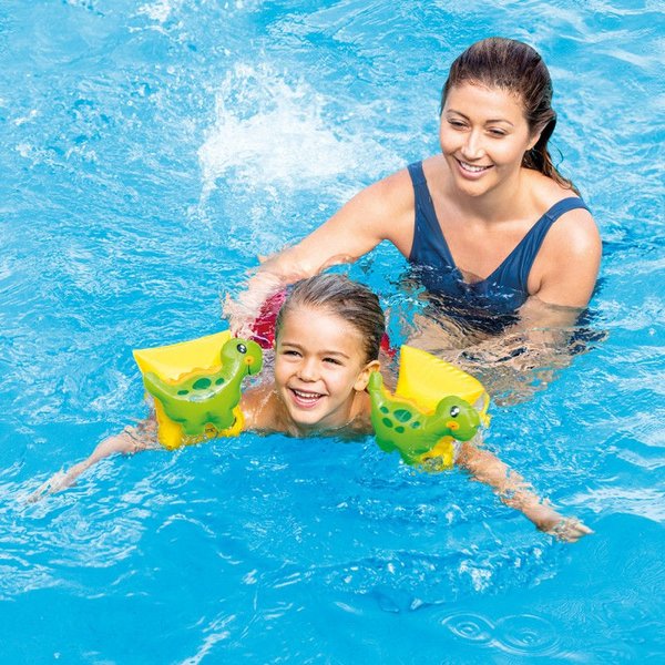 Rękawki Dinozaur Intex pomogą poczuć się pewniej Twojemu dziecku w środowisku wodnym.