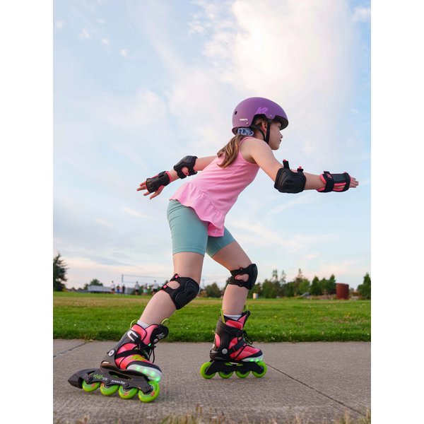 Rolki mają wygodną regulację w zakresie aż 5 rozmiarów, co okaże się bardzo pomocne w przypadku dzieci, których stopy zmieniają rozmiar czasem dwa razy w sezonie. Wysoki poziom komfortu zapewnia lekka, oddychająca i znakomicie stabilizująca stopy cholewka Stability Plus Cuff. Dzięki miękkiemu wyściełaniu nawet długa i intensywna jazda nie będzie męczyła małych stóp.