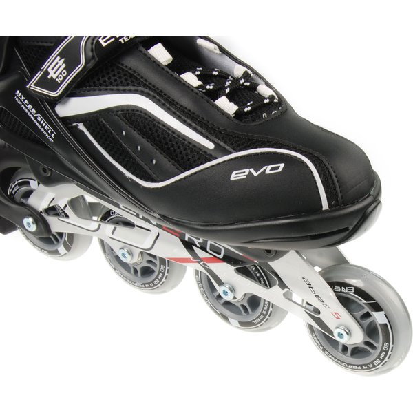 Wysokiej jakości łyżworolki Enero model EVO 100 charakteryzują się bardzo wygodnym butem z podwójnie wentylowaną wkładką oraz systemem Dynamic Flex. 3 stopniowe zapięcie oraz łożyska ABEC-5 zagwarantują pewną i bezpieczną jazdę.