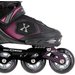 Półmiękki but z systemem wentylacji zapewnia bieżącą wymianę powietrza, dzięki której nie dojdzie do dyskomfortowego przepocenia stopy w rolce. Miękka wkładka z pianki EVA sprawia, że w rolkach jeździć możesz godzinami. Wysoce precyzyjne łożyska ABEC 9 zapewniają minimalne opory toczenia, co umożliwia Ci jazdę z dużą prędkością. Aluminiowa płoza warunkuje trwałość i zapewnia niską wagę rolek. Kilkuelementowe zapięcie sprawia, że stopa jest odpowiednio unieruchomiona w bucie, co podnosi bezpieczeństwo rekreacyjnej jazdy. Spełnienie normy CE daje Ci pewność, że to bezpieczny produkt wysokiej jakości.