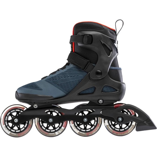 Rolki męskie oferują wyjątkową wydajność i komfort jazdy dzięki zaawansowanej konstrukcji. Wyposażone w duże kółka o średnicy 90 mm i łożyska SG9, zapewniają płynność i stabilność na każdej nawierzchni, co czyni je idealnymi do dłuższych tras. Wysoka konstrukcja buta oraz aluminiowa rama gwarantują odpowiednie wsparcie i trwałość, a wentylowana cholewka z siateczką oraz otwory wentylacyjne dbają o optymalną cyrkulację powietrza, zwiększając komfort użytkowania. System zapięć obejmujący klamrę, pasek Powerstrap i sznurowadła zapewniają idealne dopasowanie i bezpieczeństwo, a wzmocniony tył i ochraniacz na palce dodatkowo chronią stopę.