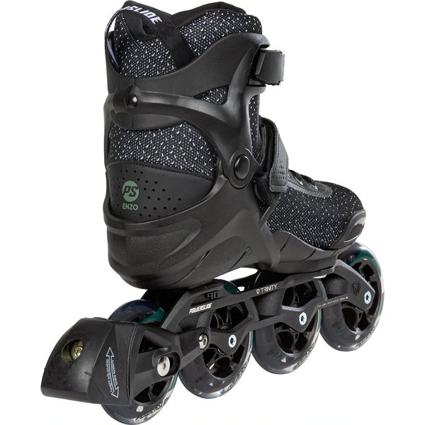 Skorupa została wykonana z lekkiego i wytrzymałego tworzywa sztucznego wzmocnionego włóknem szklanym, które jest przyjazne dla środowiska. Podeszwa, mankiet, czy płozy także zostały po części wykonane z materiałów z recyklingu. Są niesamowicie wygodne i wydajne. Górna część buta jest wykonana z Powerknit ze zgrzewanymi wzmocnieniami TPU, co zapewnia dopasowanie i wygodę. Trzypunktowy system mocowania TRINITY X pozwala dostosować pozycję płozy do Twojego stylu jazdy. Płoza została wykonana z aluminium z pomocą technologii 3D STAMPED, więc idealnie sprawdzi się przy szybkiej i intensywnej jeździe. Ponadto, dzięki tej technologii, środek ciężkości osadzony jest nisko, co daje użytkownikowi stabilność i przenosi moc. Łożyska ABEC 7 dają kompromis pomiędzy wytrzymałością a szybkością. W połączeniu z kółkami Powerslide Phuzion zapewniają lepszą kontrolę nad rolkami podczas jazdy. Technologia HABS BRAKE pozwoli Ci wyregulować wysokość hamulca tak, aby dopasować ją do Twojego stylu hamowania. Rolki Phuzion Enzo 90 dla osób zaawansowanych przeniosą Cię na zupełnie innym poziom jazdy.