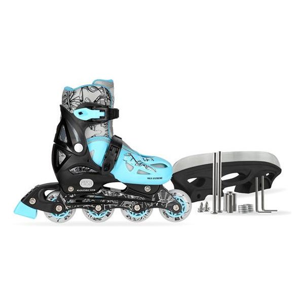Z racji tego, że dzieci rosną w zaskakująco szybkim tempie, łyżworolki posiadają możliwość regulacji rozmiaru, dzięki czemu Ty zaoszczędzisz pieniądze, a Twoje dziecko otrzyma komfort noszenia. Obuwie jest bardzo wygodne, dzięki miękkiej wkładce "velvet" oraz piance EVA, natomiast system wentylacji zapewni odpowiednią oddychalność stóp. Wyjątkowo ciekawa i rzucająca się w oczy kolorystyka sprawi, że dziecko z pewnością zostanie zauważone.