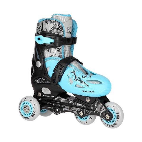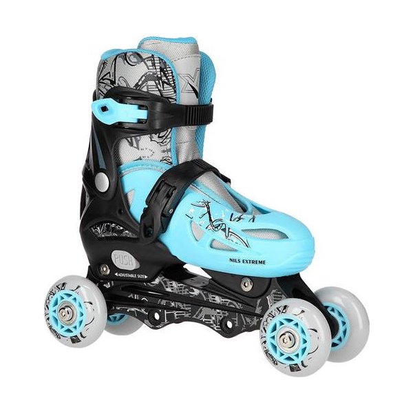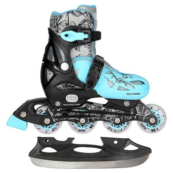 Model łyżworolek NH0320A marki NILS, to propozycja dla najmłodszych, lubiących zimowe szaleństwa. Dzięki możliwości 4 konfiguracji możesz używać produkt jako łyżworolki, rolki, łyżwy oraz rolko-wrotki. Wystarczy dołączyć dodatkowe kółka na tylko oś i łyżworolka zamienia się we wrotkę. Natomiast zamontowanie kółka na przednią oś sprawi, że otrzymasz rolko-wrotki! Tak wiele funkcji dzięki jednemu modelowi? To wszystko jest możliwe!