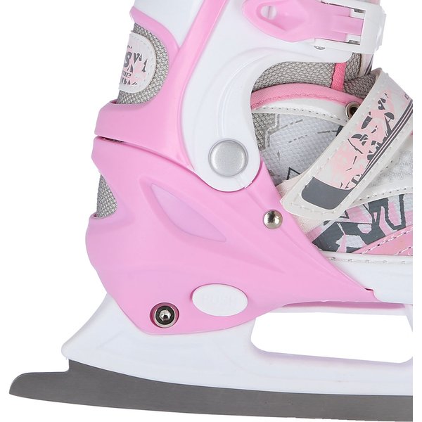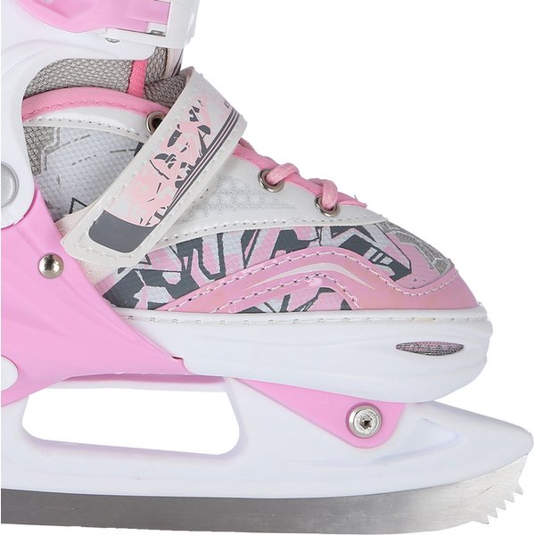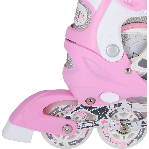 Półmiękki but zapewnia wygodę jazdy oraz odpowiednią stabilizację stopy w bucie. Wkładka wykonana z amortyzującej pianki i przewiewnej siateczki zapewnia stopom wygodę, pozwala skórze oddychać oraz odprowadza wilgoć. Płoza łyżwy wykonana została ze stali nierdzewnej, a rolki - z aluminium, przy czym są to materiały wyjątkowo trwałe i zapewniające doskonałe parametry jezdne. Łatwa regulacja rozmiaru w zakresie 4 rozmiarów jest świetnym rozwiązaniem dla najmłodszych, których stopa non stop rośnie.