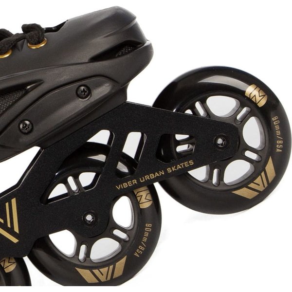 Osie 8 mm, które są montowane w sposób zapobiegający luzowaniu się śrub podczas jazdy, dodatkowo zmniejszają wagę rolki, co przekłada się na większą zwinność i wygodę użytkowania. Koła o rozmiarze 90 mm i twardości 85A, wykonane z materiału Freestyle SHR PUC, zapewniają doskonałą przyczepność, trwałość i płynność jazdy. Chromowane łożyska ABEC 9, w połączeniu z gumową podkładką, gwarantują zwiększoną trwałość oraz precyzję toczenia, co znacząco wpływa na jakość i dynamikę jazdy. Dodatkowe cechy, takie jak aluminiowa szyna, system sznurowania i pasek na rzep sprawiają, że rolki Tempish Viber L.E. 90 są niezwykle funkcjonalne i wygodne w użytkowaniu.