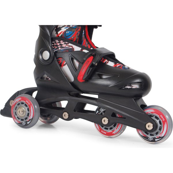 Świetną zabawę na kółkach zapewnią Twojemu dziecku łyżwo-wrotki CRK 13 P 2w1 Car marki SMJ. To bezpieczny i wygodny sprzęt, w którym Twój maluch przemierzy wiele kilometrów. Kółka są z miękkiego kauczuku, są dużo wygodniejsze niż te plastikowe, a jazda na nich jest stabilna i bezpieczna. Zapomnij o hałasie czy pękaniu. Takie kółka to komfort użytkowania i świetna przyczepność. But i płoza zostały wykonane z wysokiej jakości tworzywa ABS. Martwisz się, że Twój maluch szybko z łyżwo-wrotek wyrośnie, a Ty będziesz zmuszony do inwestycji w kolejną parę? Bez obaw. Dzięki możliwości regulacji ta pierwsza posłuży na dłużej. Te wrotko-rolki będą rosły wraz ze stopą Twojego dziecka. A kiedy już znudzi mu się jazda na wrotkach, za pomocą klucza z łatwością przestawisz kółka i wrotki zamienisz w rolki. Jeden sprzęt, dwie możliwości. I przede wszystkim mnóstwo bezpiecznej zabawy na świeżym powietrzu.