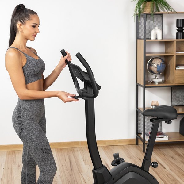 - Regulowany kąt nachylenia kierownicy: Ergonomia jest niezwykle ważna podczas każdego treningu. Regulowany kąt nachylenia pozwala rozluźnić mięśnie szyi i barku.