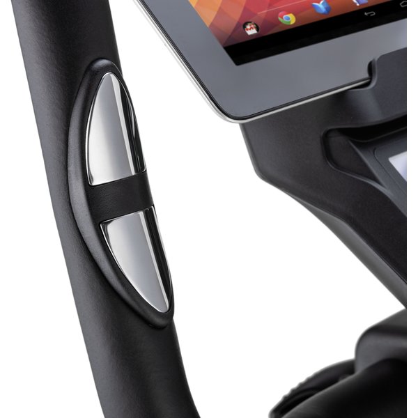 - Uchwyt na tablet: Pozwala na wygodne korzystanie z urządzeń mobilnych podczas treningu, dzięki czemu użytkownik może oglądać filmy, słuchać muzykę lub monitorować swoje postępy w aplikacji mobilnej.