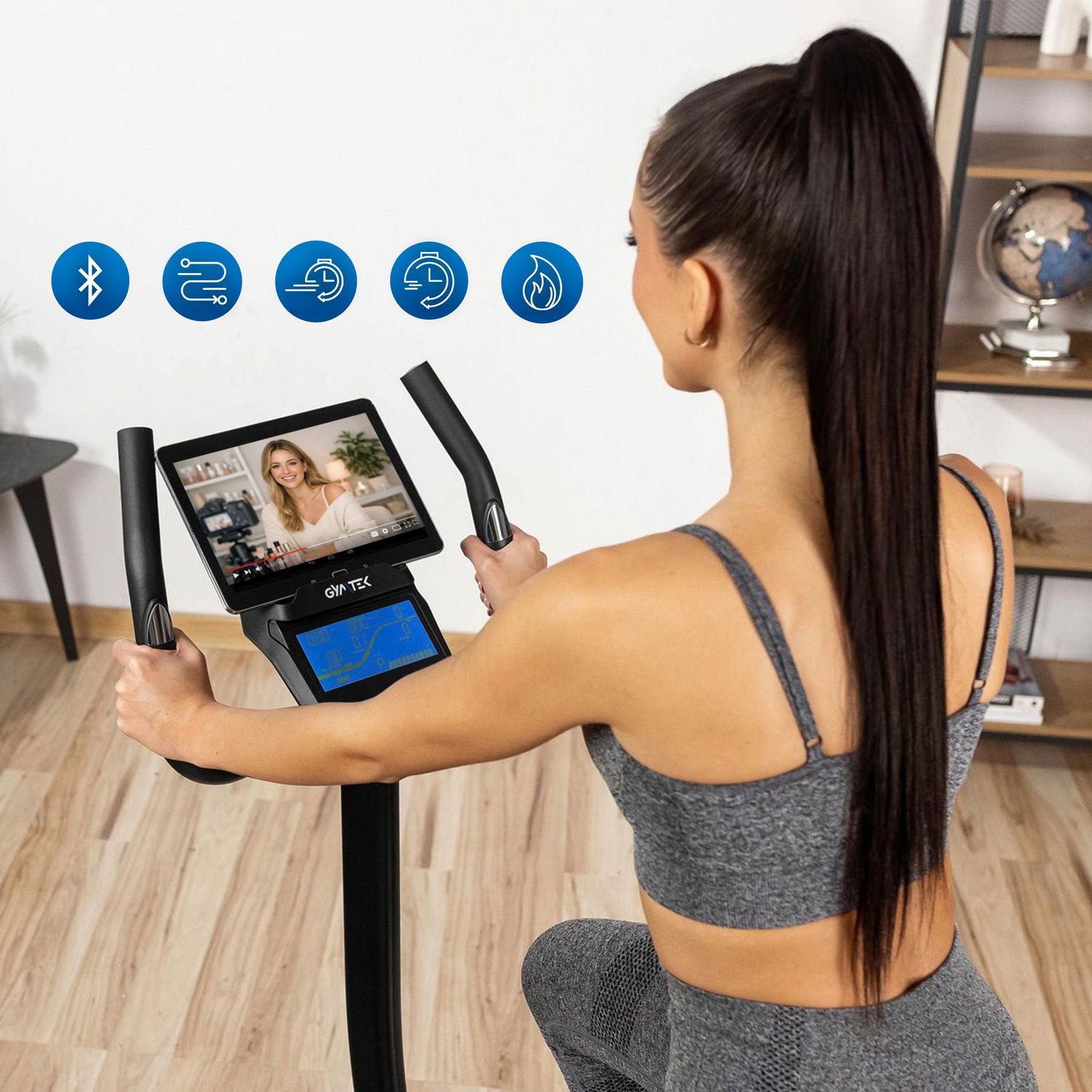 Rowerek Gymtek został zaprojektowany z myślą o maksymalnej wygodzie użytkownika. Dzięki praktycznemu miejscu na tablet możliwe jest oglądanie ulubionych filmów lub śledzenie statystyk treningu, nie przerywając ćwiczeń. Dodatkowo wbudowane kółka transportowe umożliwiają łatwe przemieszczanie sprzętu, co ułatwia jego przechowywanie.