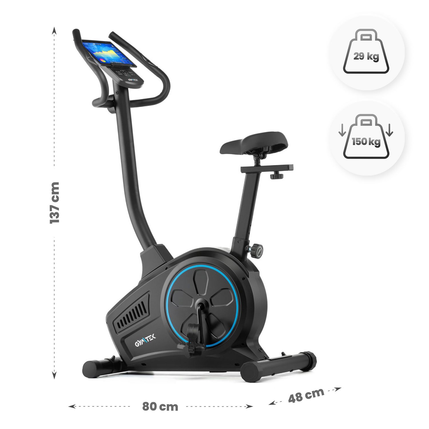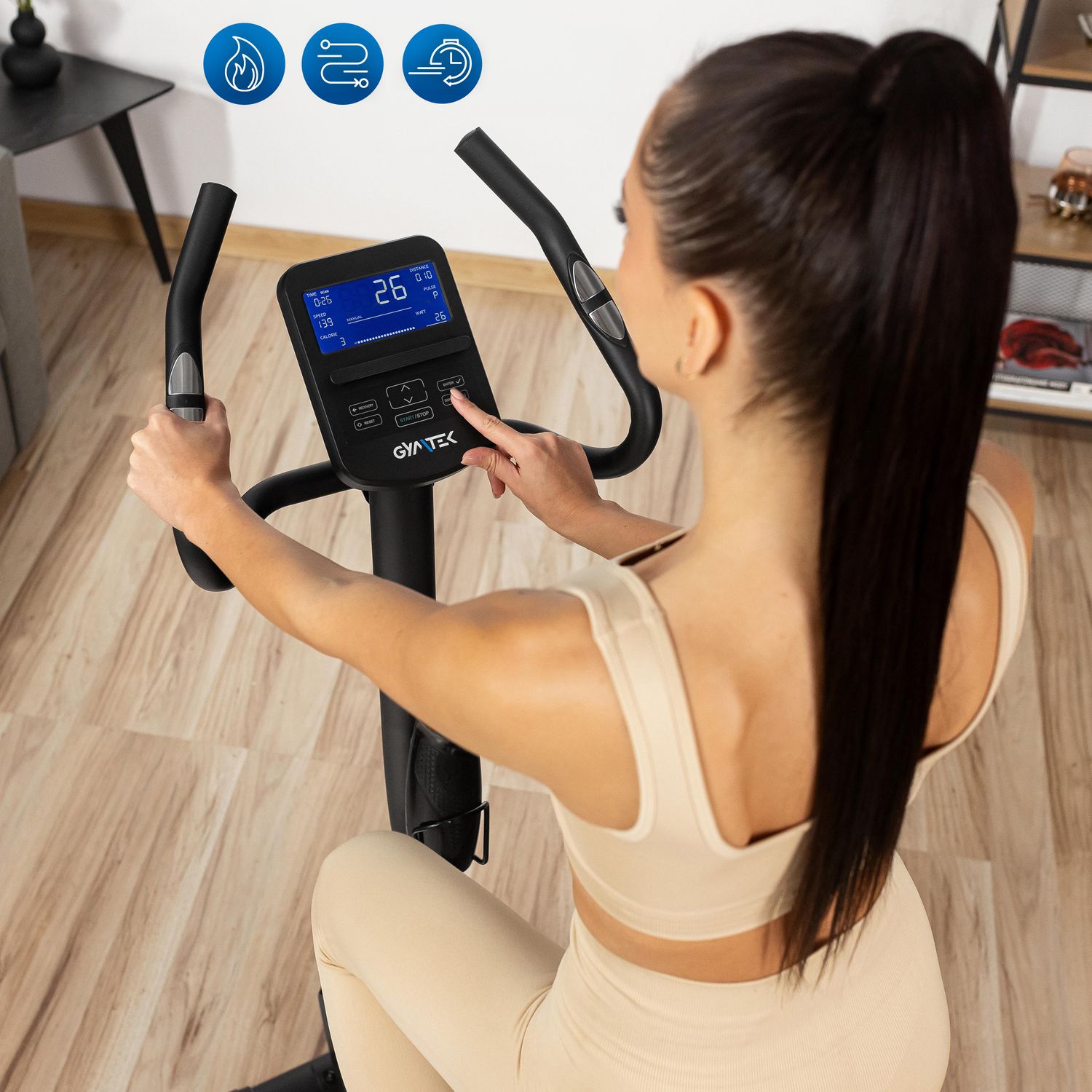 - Elektromagnetyczny system oporu w rowerze Gymtek zapewnia równomierną pracę urządzenia. Dzięki 16-stopniowej, elektronicznej regulacji oporu użytkownik ma możliwość, aby precyzyjnie dostosować intensywność treningu do swoich potrzeb – od lekkiej rozgrzewki po wymagające interwały.
