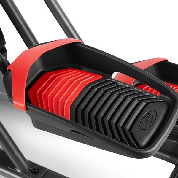 Płynny ruch pedałów, także podczas zmiany poziomu obciążenia sprawia, że trening jest komfortowy od początku do końca. Antypoślizgowa powierzchnia płóz sprawia, że stawy są chronione przed nadmiernym uciskiem. Efektywność swojego treningu zwiększysz trenując w odpowiedniej strefie tętna. Tętno wygodnie zmierzysz chwytając za czujniki umieszczone na uchwytach. Max Trainer M5 wyposażony został w liczne udogodnienia jak tacka na tablet, uchwyt na bidon czy kółka transportowe. Sprzęt posiada także nóżki poziomujące, które zapewnią stabilność sprzętu na nie do końca równych nawierzchniach.