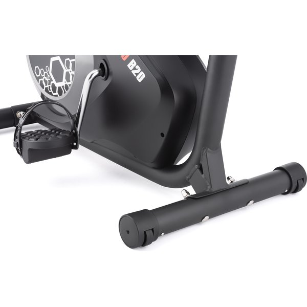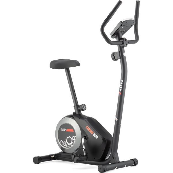 Rowerek magnetyczny B20 Allto Cardio znajdzie zastosowanie w każdym domu. Jego niewielkie wymiary sprawiają, że nie potrzebujesz dużej przestrzeni. Możesz postawić go w salonie, sypialni, czy w przedpokoju. Rower waży 20 kg, więc jest stabilny, a równocześnie łatwo go przenieść w razie konieczności. Urządzenie pracuje bardzo płynnie, co jest wynikiem oporu magnetycznego. Układ hamulcowy jest niezależny od prędkości, dlatego możesz czuć się bezpiecznie podczas treningów. 8-stopniowa regulacja obciążenia pozwoli Ci dopasować intensywność treningów do swoich indywidualnych potrzeb. Rowerek posiada komputer treningowy zasilany na baterie. Zobaczysz na nim najważniejsze parametry Twoich treningów - czas, prędkość, dystans, kalorie, puls. Pomiar pulsu jest możliwy poprzez wykorzystanie sensorów dotykowych wmontowanych w ramiona kierownicy. Urządzenie z łatwością dopasujesz do swojego wzrostu - masz możliwość regulacji wysokości siodełka.