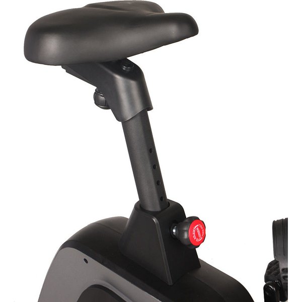Urządzenie posiada paskowy system napędu oraz magnetyczny system oporu, dlatego pracuje cicho i płynnie. Atutem jest ergonomiczne siodełko, które sprawia, że długi trening w pozycji siedzącej nie wywoła dyskomfortu. Pedały posiadają regulowane opaski, co pozytywnie wpływa na bezpieczeństwo i komfort użytkowania. Stopki stabilizujące umożliwiają dopasowanie rowerka nawet do nierównej podłogi. Koło zamachowe o wadze 7 kg pracuje 2 razy bardziej wydajnie, dzięki systemowi Magnetic Pro. Urządzenie zostało wyposażone w czujnik pulsu, co pozwala na śledzenie parametrów podczas wysiłku fizycznego. Informacje zobaczysz na komputerze treningowym. Rowerek posiada regulację oporu, która odbywa się automatycznie. Atutem jest wielofunkcyjna kierownica z podstawką na telefon lub tablet. Liczne programy treningowe pozwolą Ci dopasować intensywność ćwiczeń do aktualnej kondycji.