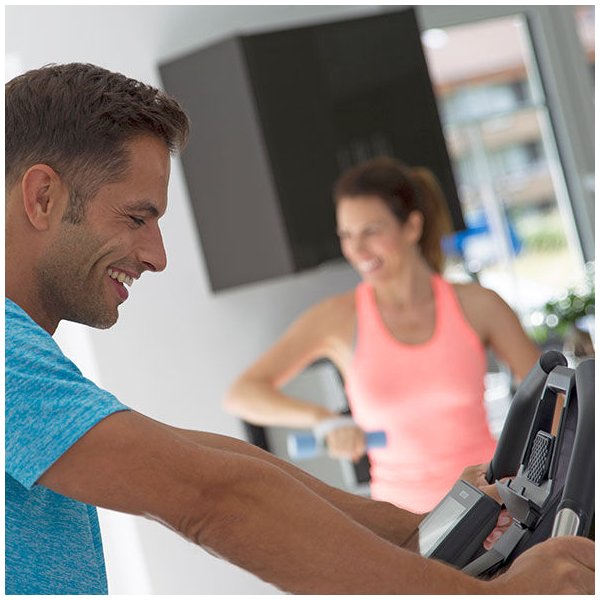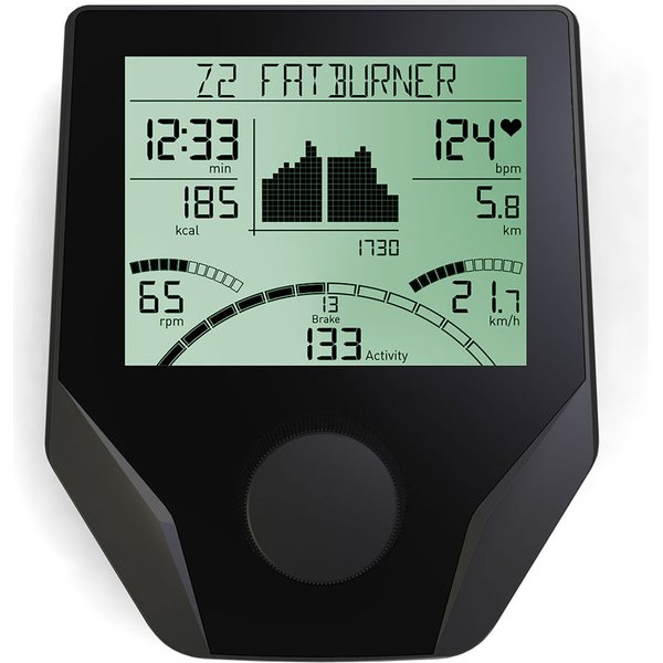 Czytelny wyświetlacz pokazuje najistotniejsze informacje, takie jak pokonana odległość, liczba spalonych kalorii, prędkość, z jaką się poruszasz, czy pomiar pulsu. Puls możesz wygodnie mierzyć w czasie treningu za pomocą sensorów dotykowych umieszczonych w uchwytach, a także opcjonalnie za pośrednictwem pasa telemetrycznego, który jeszcze dokładniej bada Twoje tętno. Utrzymanie pulsu na dostosowanym do osobistych predyspozycji poziomie ma kluczowy wpływ na bezpieczeństwo i efektywność treningu, dlatego tak istotne jest, żeby tętno było mierzone dokładnie, a ustawienia - spersonalizowane.