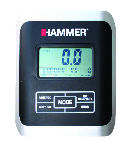- czas, prędkość, dystans, RPM, kalorie, puls