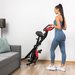 Składana konstrukcja to praktyczne rozwiązanie, które pozwala na szybkie i wygodne złożenie sprzętu po zakończonym treningu. Dzięki temu urządzenie zajmuje mniej miejsca, co jest szczególnie istotne w domowych warunkach. Wbudowane kółka na przednim stabilizatorze umożliwiają łatwe przesuwanie urządzenia.