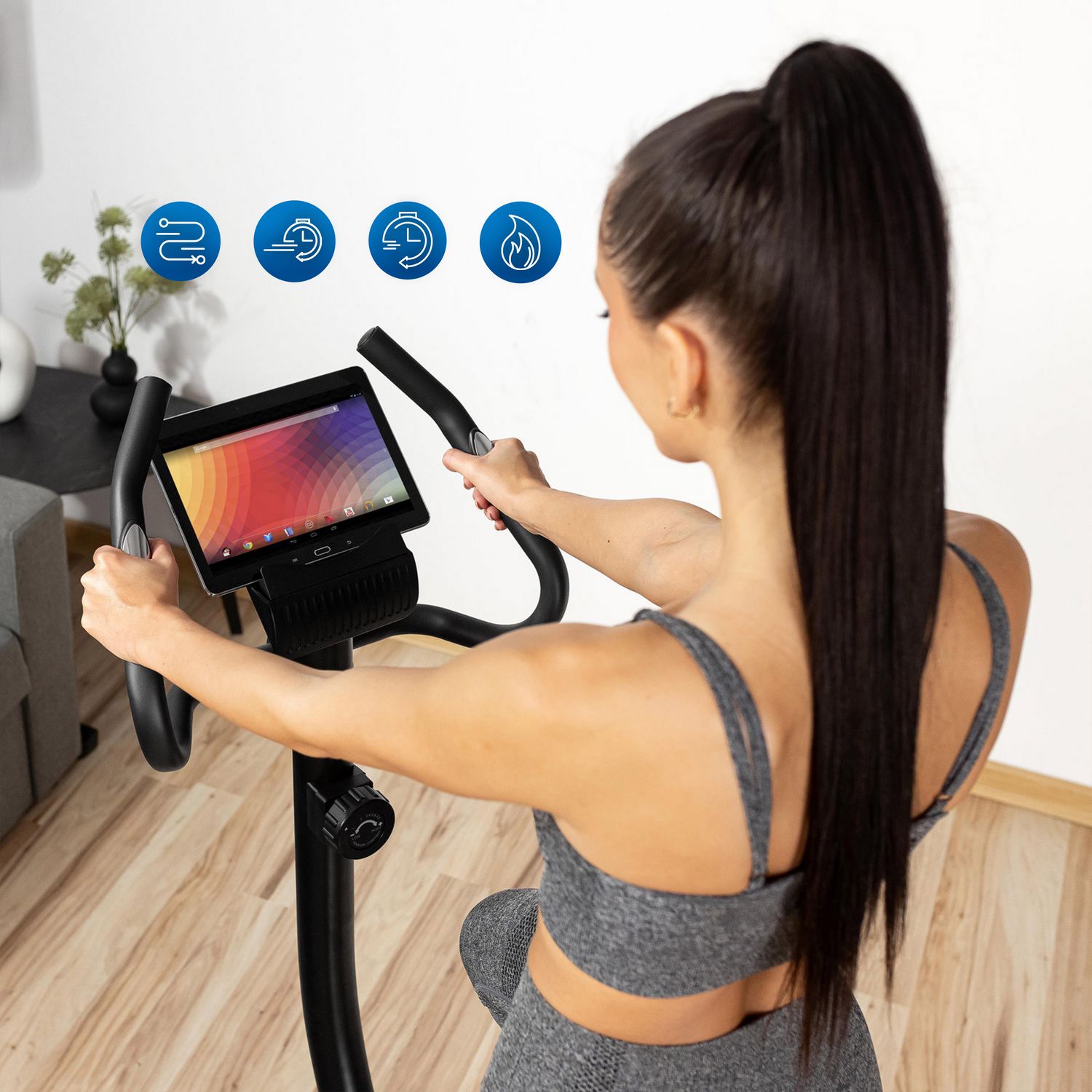 Antypoślizgowe pedały zwiększają stabilność stóp, a wbudowane rolki transportowe ułatwiają przenoszenie sprzętu. Kompaktowa konstrukcja sprawia, że rower nie zajmuje dużo miejsca, co czyni go doskonałym wyborem do domowych przestrzeni treningowych.