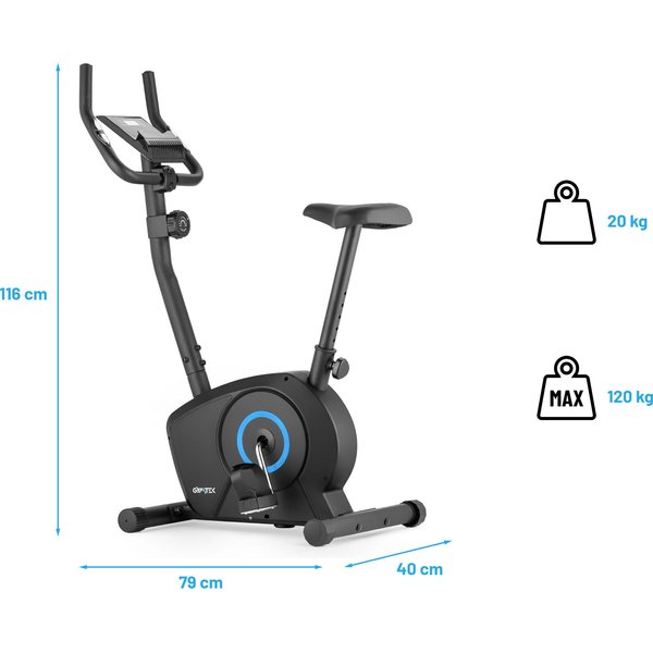 Rower Gymtek jest odpowiedni dla osób do 175 cm wzrostu. Dlatego to dobry wybór zarówno dla dorosłych i młodszych użytkowników. Na czytelnym ekranie LCD masz możliwość śledzenia kluczowych parametrów swoich treningów - czas, prędkość, spalone kalorie, puls. Pomiar pulsu odbywa się z wykorzystaniem sensorów dotykowych, zlokalizowanych na uchwytach.