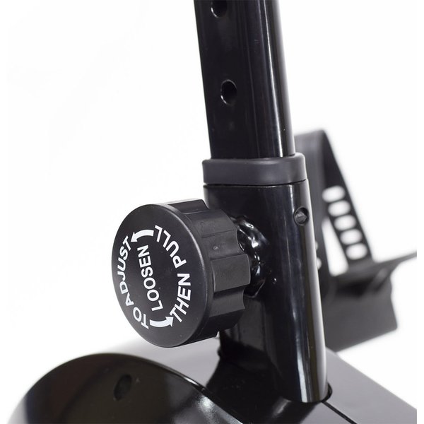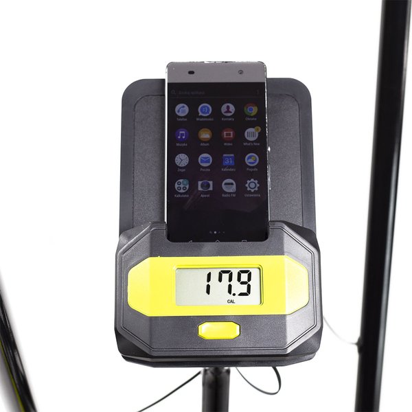 Ergonomicznie wyprofilowane siedzisko posiada regulację wysokości, pozwalając Ci na ustawienie pasujące do Twojego wzrostu i indywidualnych preferencji. W przedniej podstawie zamontowano kółka transportowe, które pozwalają na wygodny transport sprzętu w dowolne miejsce. Na uchwytach umieszczono czułe sensory dotykowe mierzące puls w sposób precyzyjny i szybki. Powyżej czytelnego wyświetlacza, z którego dowiesz się o ilości spalonych kalorii czy pokonanym przez Ciebie dystansie znajduje się praktyczny uchwyt na urządzenia elektroniczne, możesz więc ćwiczyć jednocześnie pozostając w kontakcie ze światem wirtualnym.