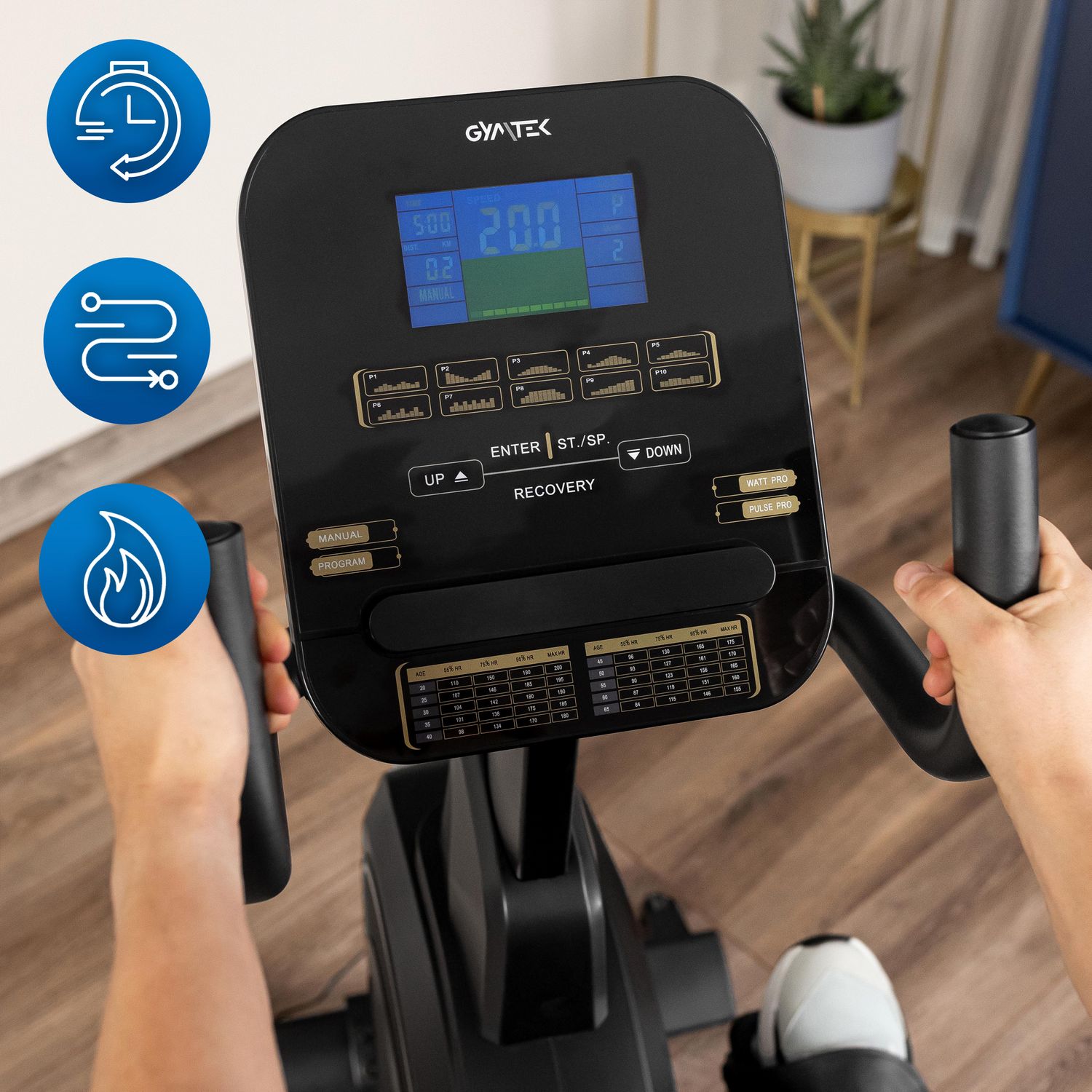 Nowoczesny komputer treningowy z wyświetlaczem LCD dostarcza kluczowych danych o parametrach treningu. Dzięki 21 programom treningowym, w tym opcjom HRC i funkcji Recovery, użytkownik może dostosować intensywność ćwiczeń do swoich potrzeb i celów.