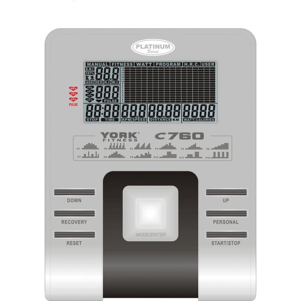 C760 jedyny poziomy rower w ofercie firmy York. Posiada wygodne siedzisko stabilizujące kręgosłup podczas ćwiczeń. Wyposażony w magnetyczny system hamowania z elektroniczną regulacją obciążenia, wielofunkcyjne wyświetlacz oraz sensory dotykowe.