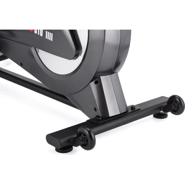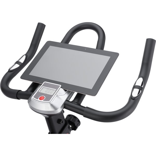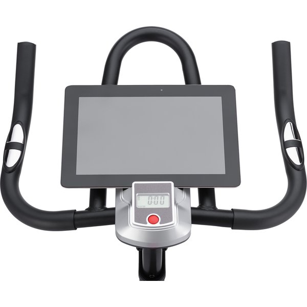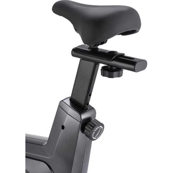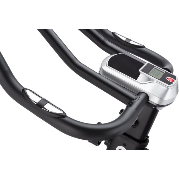 Rowerek posiada komputer treningowy zasilany na baterie. Zobaczysz na nim najważniejsze parametry, takie jak: czas, prędkość, dystans, kalorie, puls. Na kierownicy znajdują się sensory dotykowe, które umożliwiają pomiar pulsu. Urządzenie z łatwością dopasujesz do swojego wzrostu poprzez regulację wysokości siodełka i kierownicy. Atutem tego modelu są kółka transportowe, które ułatwiają transport. Rowerek został wyposażony w uchwyt na urządzenie mobilne, co pozwala oglądać filmy podczas treningu.