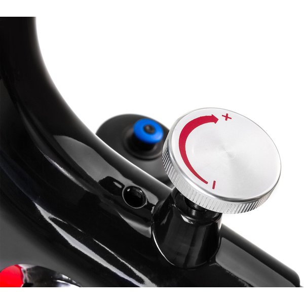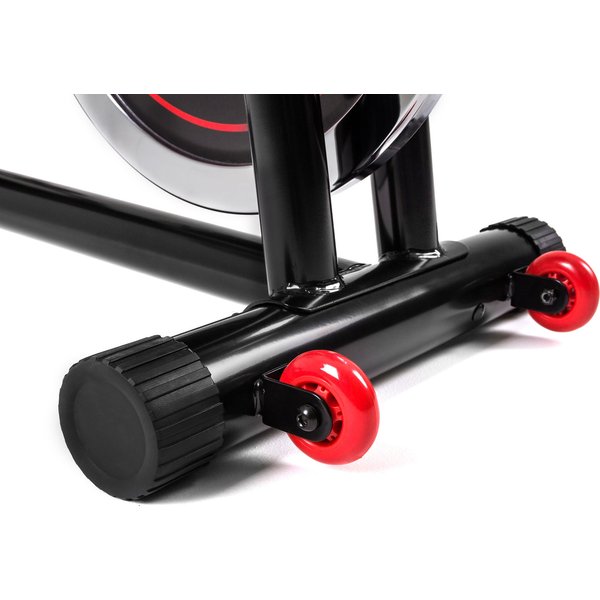 Model ten wyposażony jest w 18-kilogramowe koło zamachowe, które odpowiada za płynną i cichą jazdę, bezpieczną dla stawów nawet przy maksymalnej prędkości i wysokim poziomie oporu. Duże wygodne pokrętło umożliwia błyskawiczne dostosowanie oporu do swoich potrzeb, tak więc nawet początkujący użytkownik, jak i osoba na zaawansowanym poziomie będzie w pełni usatysfakcjonowana możliwościami tego roweru spiningowego.