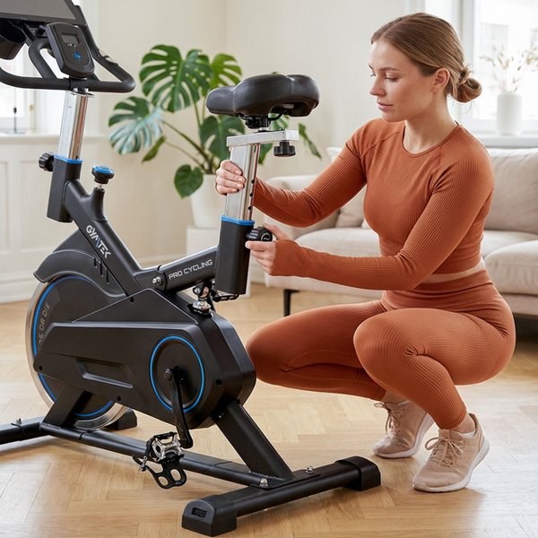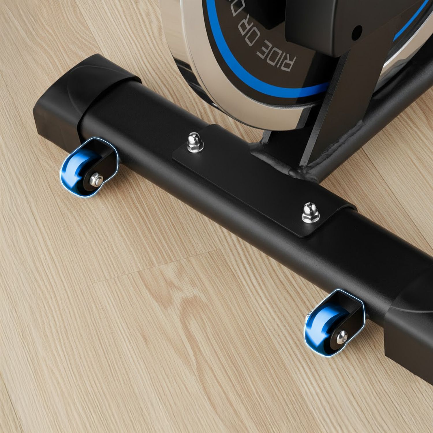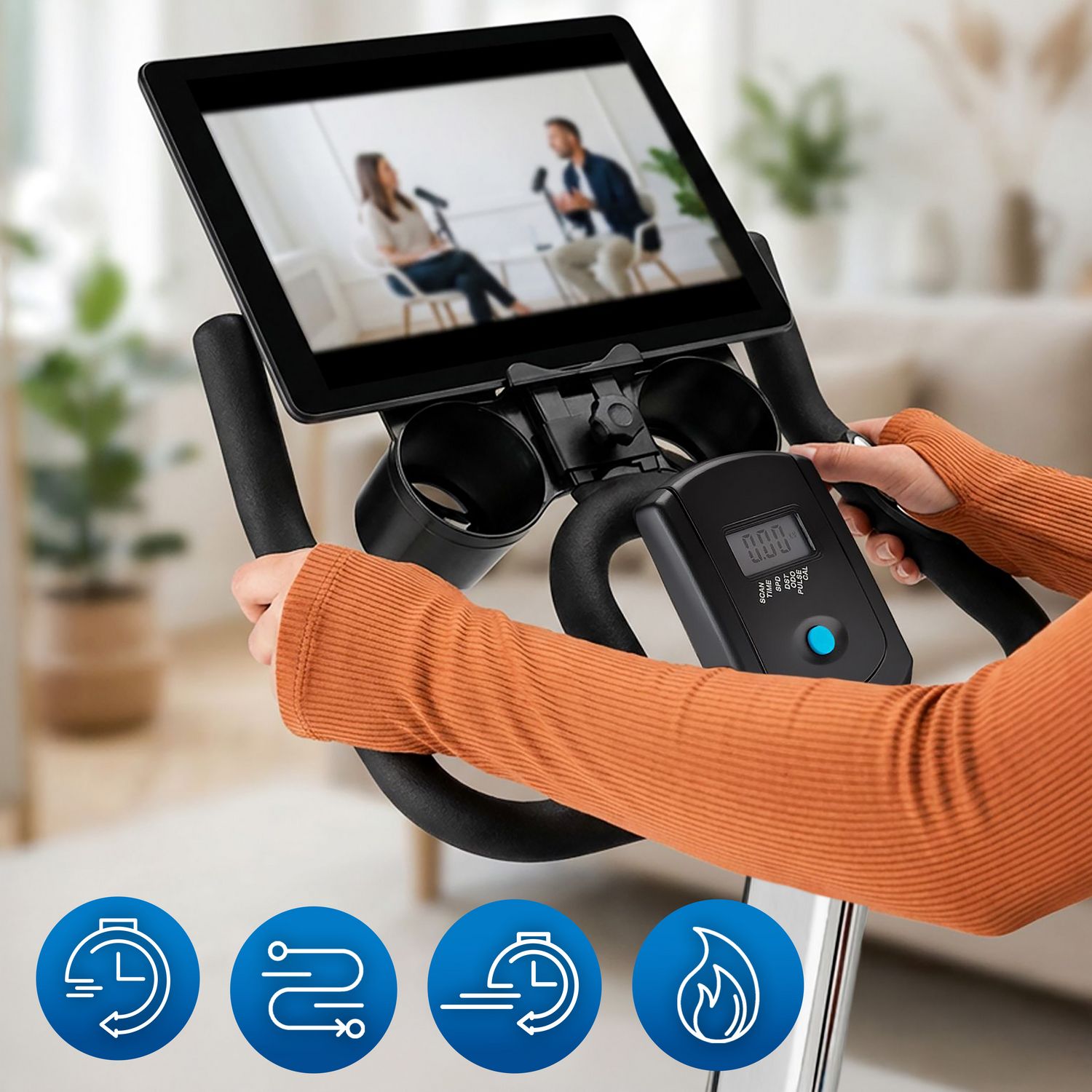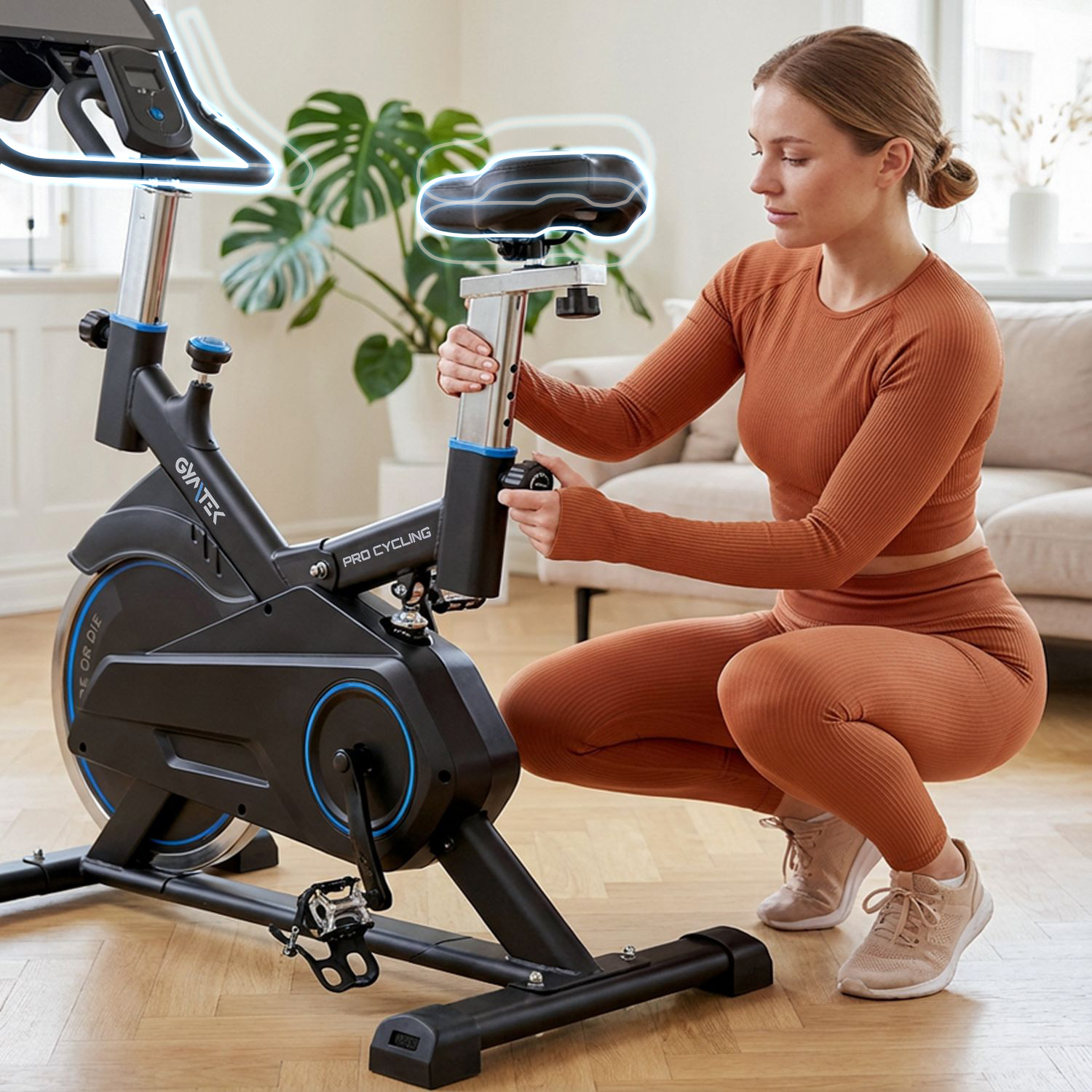 - Komfort i stabilność podczas ćwiczeń: Ergonomiczne siodełko, antypoślizgowe pedały z paskami blokującymi oraz neoprenowe uchwyty zapewniają pewny chwyt i wygodę.