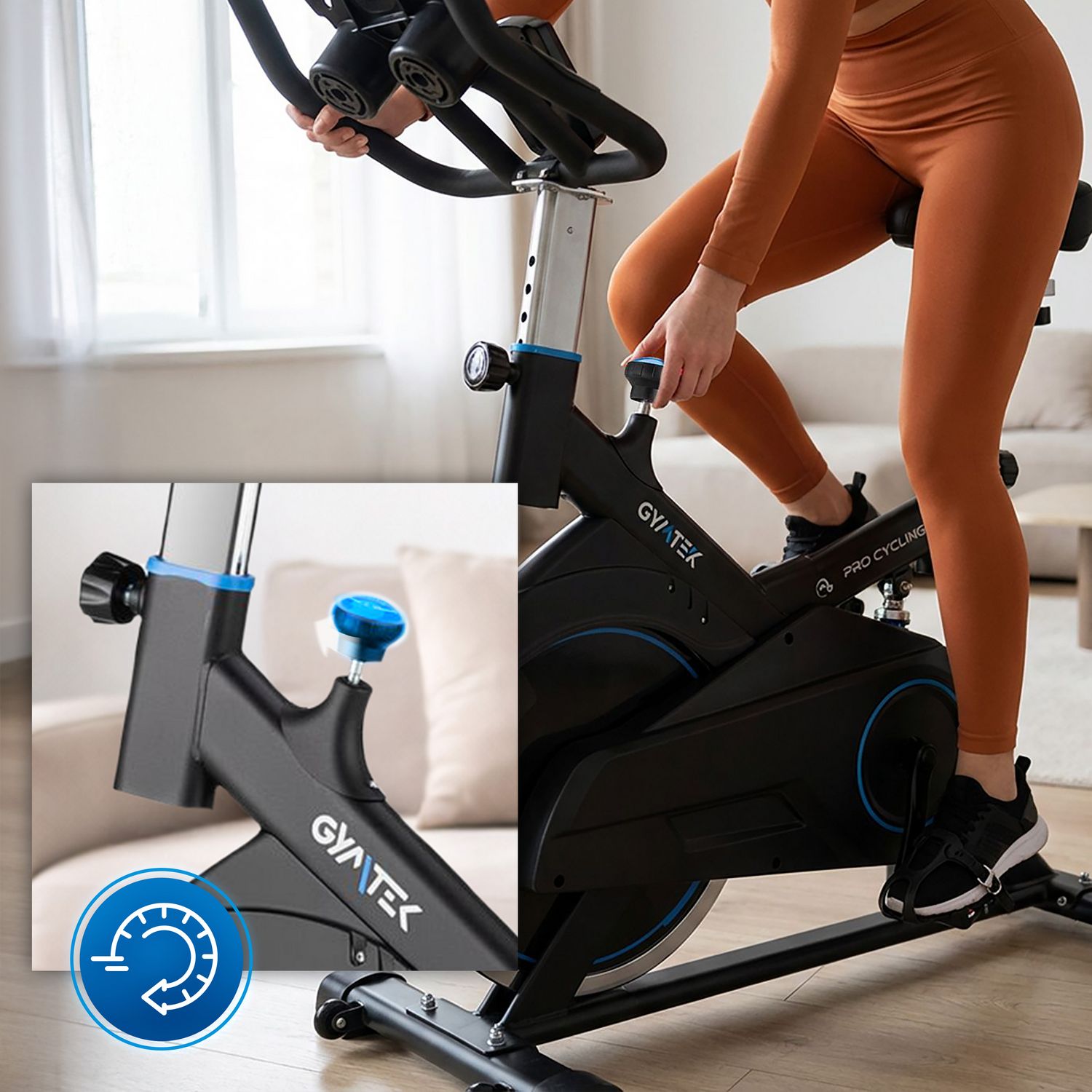 Mechaniczny system hamowania w połączeniu z ręczną regulacją oporu umożliwia dokładne dostosowanie poziomu intensywności do rodzaju treningu – od spokojnej jazdy po intensywne interwały. Dzięki temu użytkownik ma pełną kontrolę nad obciążeniem, co przekłada się na bardziej efektywne i zróżnicowane ćwiczenia.