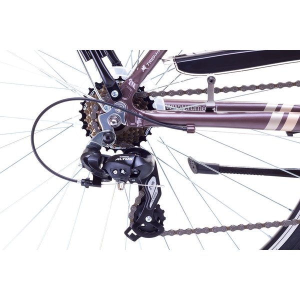 Wbudowane manetki oraz przerzutki marki Shimano świadczą o najwyższej jakości wykonania, przez co rower będzie Ci służyć przez bardzo długi okres. Możesz spokojnie pokonywać trudne trasy bez obaw o awarię. Dzięki regulacji kierownicy oraz siodełka możesz dostosować rower do własnej wygodny, a cechujący się wysoką wytrzymałością na obciążenia i zarazem lekki aluminiowy mostek kierownicy jest dostosowany do naturalnej anatomii.