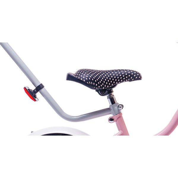 Dodatkowo, rowerek ma błotniki nad przednim i tylnym kołem, łańcuch jest osłonięty a dołączony pchacz pasuje kolorystycznie do całego rowerka! Koszyczek z przodu pomieści wszystkie skarby zebrane z podróży i dopełni wyglądu rowerka.