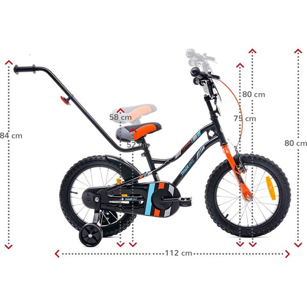 Twoje dziecko lubi aktywnie spędzać wolny czas? Na pewno spodoba mu się rowerek Tiger Bike od Sun Baby. To produkt przeznaczony dla chłopców w wieku 4-6 lat. Rowerek posiada boczne kółka do nauki jazdy, dzięki czemu proces zdobywania nowych umiejętności jest bezpieczny i przyjemny. Produkt posiada także wygodny pchacz, przy użyciu którego pomożesz dziecku wykonać pierwsze kroki w rowerowym świecie. Nowoczesny design sprawi, że każde dziecko będzie chciało jeździć na rowerze.