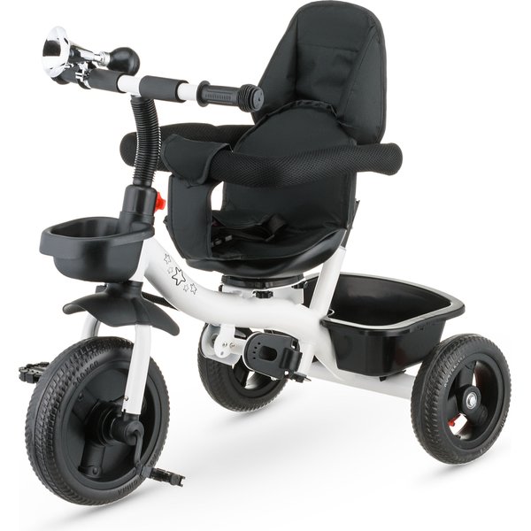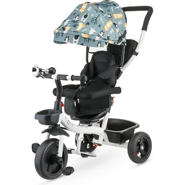 Będzie stanowił bezpieczny i wygodny środek transportu, który będzie mógł zastąpić tradycyjną spacerówkę. Obrotowe siedzisko pozwoli na ustawienie go przodem lub tyłem do kierunku jazdy. Pozwoli to, więc dostosować go do indywidualnych preferencji maluszka. Wygodna rączka do prowadzenia i sterowania rowerkiem pozwoli rodzicom na bezproblemowe operowanie kierunkiem i prędkością jazdy. Dwa pojemniki oraz odpinana saszetka na drobiazgi pozwolą zabrać ze sobą zabawki i inne rzeczy, które przydadzą się podczas spaceru. Bezpieczeństwo zapewnią odpinana barierka i pasy, które zapobiegną one przed wypadnięciem dziecka z rowerka. Komfortowe siedzisko zapewnią wygodę bez względu na jak długi spacer się wybierzemy, a składany daszek uchroni maluszka przed promieniowaniem w słoneczne dni.