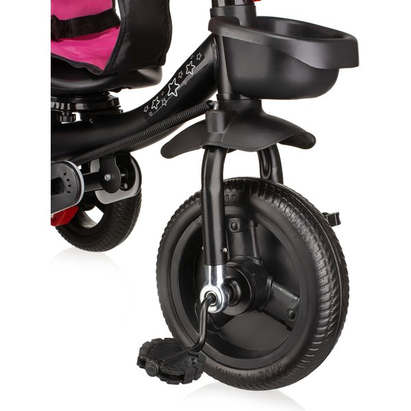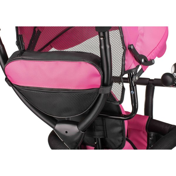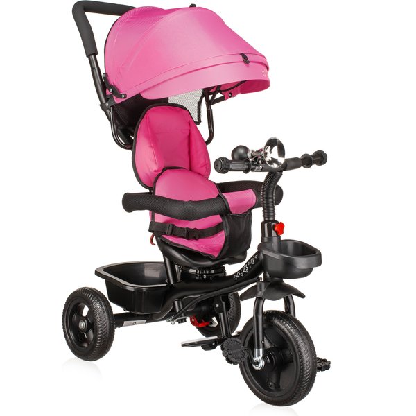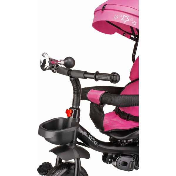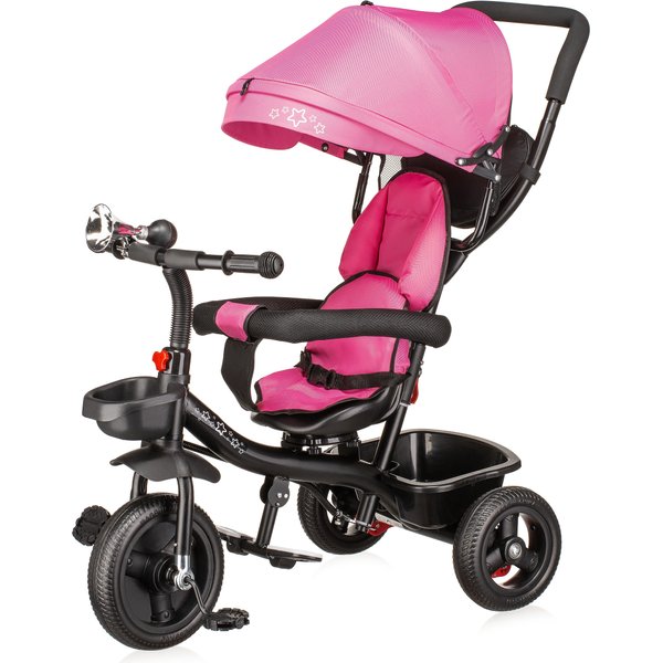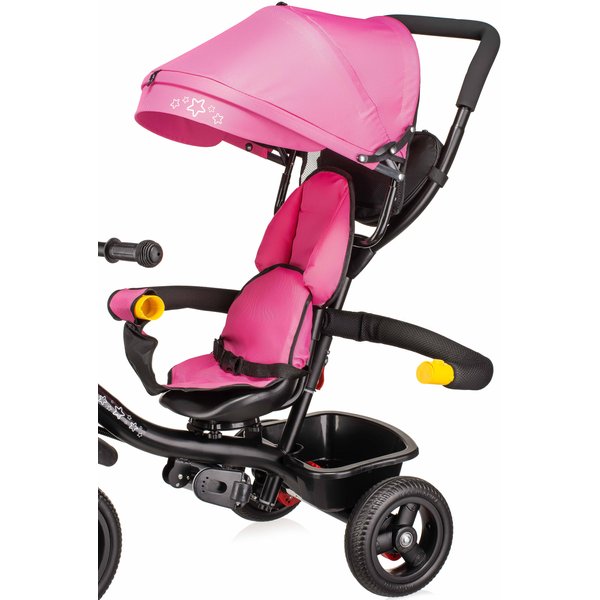 Będzie stanowił bezpieczny i wygodny środek transportu, który będzie mógł zastąpić tradycyjną spacerówkę. Obrotowe siedzisko pozwoli na ustawienie go przodem lub tyłem do kierunku jazdy. Pozwoli to, więc dostosować go do indywidualnych preferencji maluszka. Wygodna rączka do prowadzenia i sterowania rowerkiem pozwoli rodzicom na bezproblemowe operowanie kierunkiem i prędkością jazdy. Dwa pojemniki oraz odpinana saszetka na drobiazgi pozwolą zabrać ze sobą zabawki i inne rzeczy, które przydadzą się podczas spaceru. Bezpieczeństwo zapewnią odpinana barierka i pasy, które zapobiegną one przed wypadnięciem dziecka z rowerka. Komfortowe siedzisko zapewnią wygodę bez względu na jak długi spacer się wybierzemy, a składany daszek uchroni maluszka przed promieniowaniem w słoneczne dni.