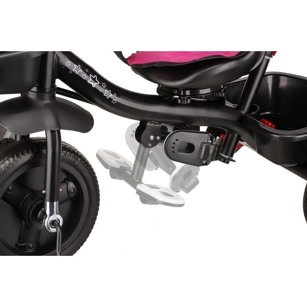 W łatwy sposób zamienimy go w rowerek trójkołowy z pedałami, który pozwoli na dalsze trenowanie swoich zdolności motorycznych oraz pewności ciała. Wystarczy tylko odpiąć barierkę zabezpieczającą oraz prowadnicę i maluch może ruszyć przed siebie! Kierownica posiada antypoślizgowe nakładki co pozwoli na pewny chwyt, a koła z pianki EVA zapewnią komfortową jazdę niezależnie od nawierzchni.