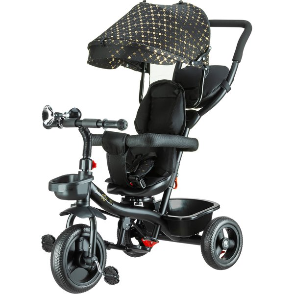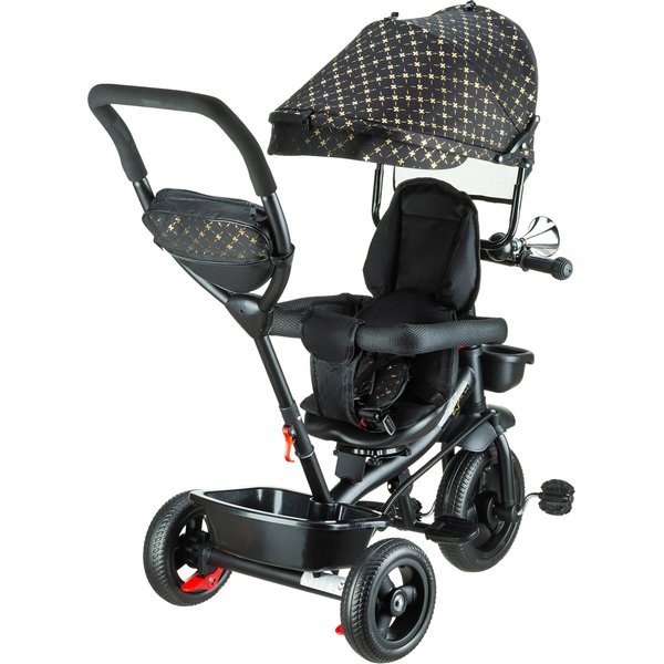 Będzie stanowił bezpieczny i wygodny środek transportu, który będzie mógł zastąpić tradycyjną spacerówkę. Obrotowe siedzisko pozwoli na ustawienie go przodem lub tyłem do kierunku jazdy. Pozwoli to, więc dostosować go do indywidualnych preferencji maluszka. Wygodna rączka do prowadzenia i sterowania rowerkiem pozwoli rodzicom na bezproblemowe operowanie kierunkiem i prędkością jazdy. Dwa pojemniki oraz odpinana saszetka na drobiazgi pozwolą zabrać ze sobą zabawki i inne rzeczy, które przydadzą się podczas spaceru. Bezpieczeństwo zapewnią odpinana barierka i pasy, które zapobiegną one przed wypadnięciem dziecka z rowerka. Komfortowe siedzisko zapewnią wygodę bez względu na jak długi spacer się wybierzemy, a składany daszek uchroni maluszka przed promieniowaniem w słoneczne dni.