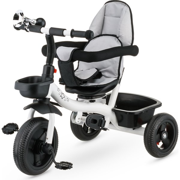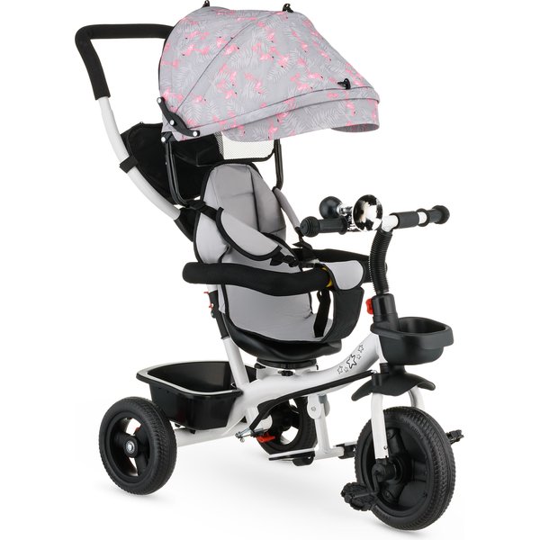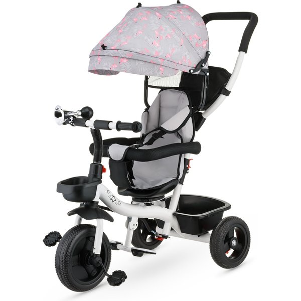 Będzie stanowił bezpieczny i wygodny środek transportu, który będzie mógł zastąpić tradycyjną spacerówkę. Obrotowe siedzisko pozwoli na ustawienie go przodem lub tyłem do kierunku jazdy. Pozwoli to, więc dostosować go do indywidualnych preferencji maluszka. Wygodna rączka do prowadzenia i sterowania rowerkiem pozwoli rodzicom na bezproblemowe operowanie kierunkiem i prędkością jazdy. Dwa pojemniki oraz odpinana saszetka na drobiazgi pozwolą zabrać ze sobą zabawki i inne rzeczy, które przydadzą się podczas spaceru. Bezpieczeństwo zapewnią odpinana barierka i pasy, które zapobiegną one przed wypadnięciem dziecka z rowerka. Komfortowe siedzisko zapewnią wygodę bez względu na jak długi spacer się wybierzemy, a składany daszek uchroni maluszka przed promieniowaniem w słoneczne dni.
