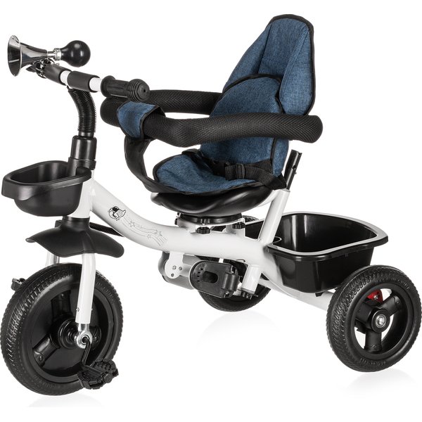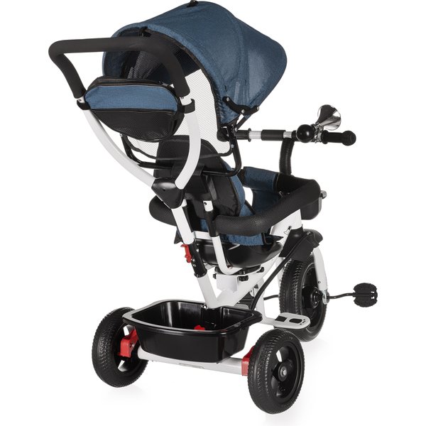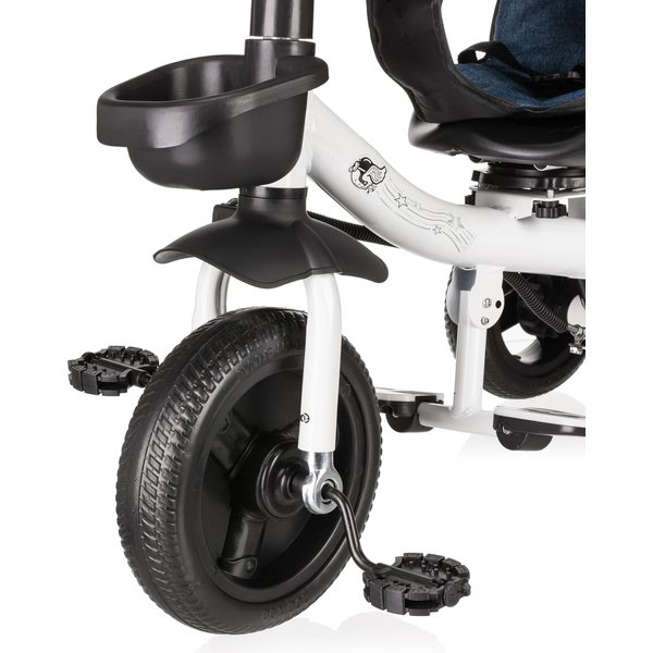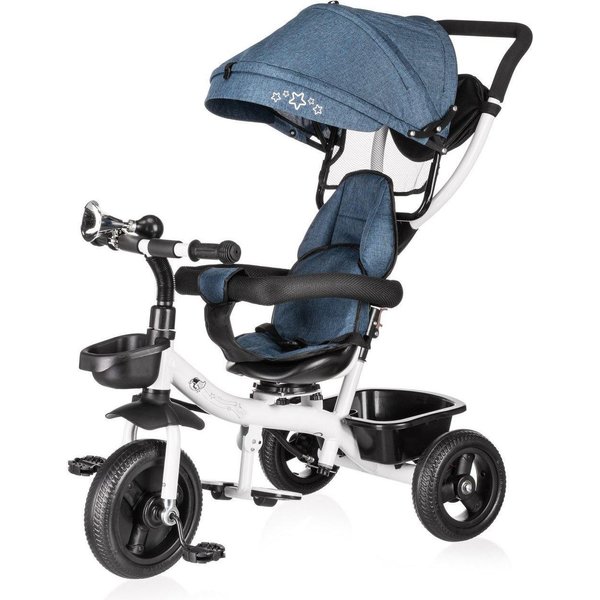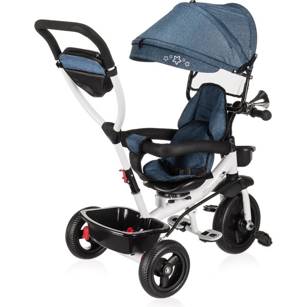 Będzie stanowił bezpieczny i wygodny środek transportu, który będzie mógł zastąpić tradycyjną spacerówkę. Obrotowe siedzisko pozwoli na ustawienie go przodem lub tyłem do kierunku jazdy. Pozwoli to, więc dostosować go do indywidualnych preferencji maluszka. Wygodna rączka do prowadzenia i sterowania rowerkiem pozwoli rodzicom na bezproblemowe operowanie kierunkiem i prędkością jazdy. Dwa pojemniki oraz odpinana saszetka na drobiazgi pozwolą zabrać ze sobą zabawki i inne rzeczy, które przydadzą się podczas spaceru. Bezpieczeństwo zapewnią odpinana barierka i pasy, które zapobiegną one przed wypadnięciem dziecka z rowerka. Komfortowe siedzisko zapewnią wygodę bez względu na jak długi spacer się wybierzemy, a składany daszek uchroni maluszka przed promieniowaniem w słoneczne dni.
